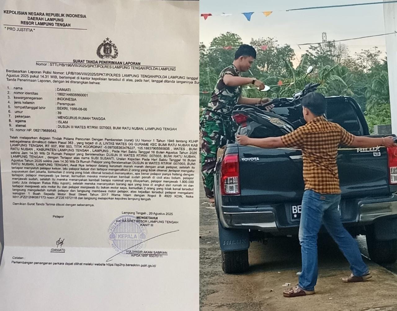 Warga Lampung Tengah Laporkan Dugaan Curat Bermodus Penagihan Utang